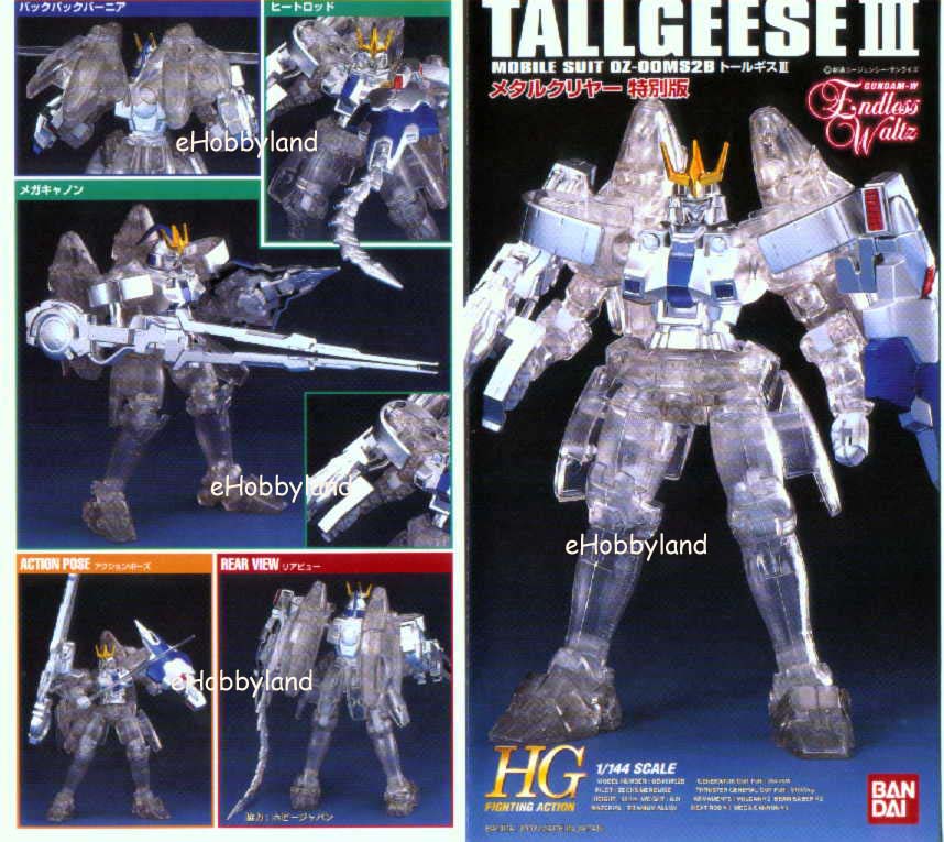This is a 1/144 small-scale version of the classic mecha from the OVA series "Gundam Wing: Endless Waltz." Can be built as any of the three-versions of the Tallgeese. Same parts as the earlier release, plus one additional runner of new parts. Snap-assembly, fully-poseable and molded in color. Includes foil stickers for those parts of the kit that are not molded in the proper colors.