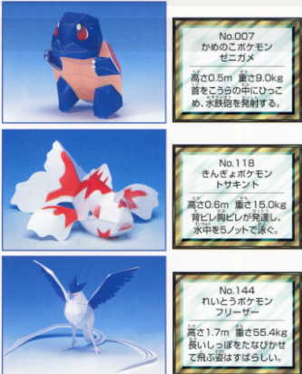Each pack contains 3 paper pocket monsters as shown in the image 2 column.